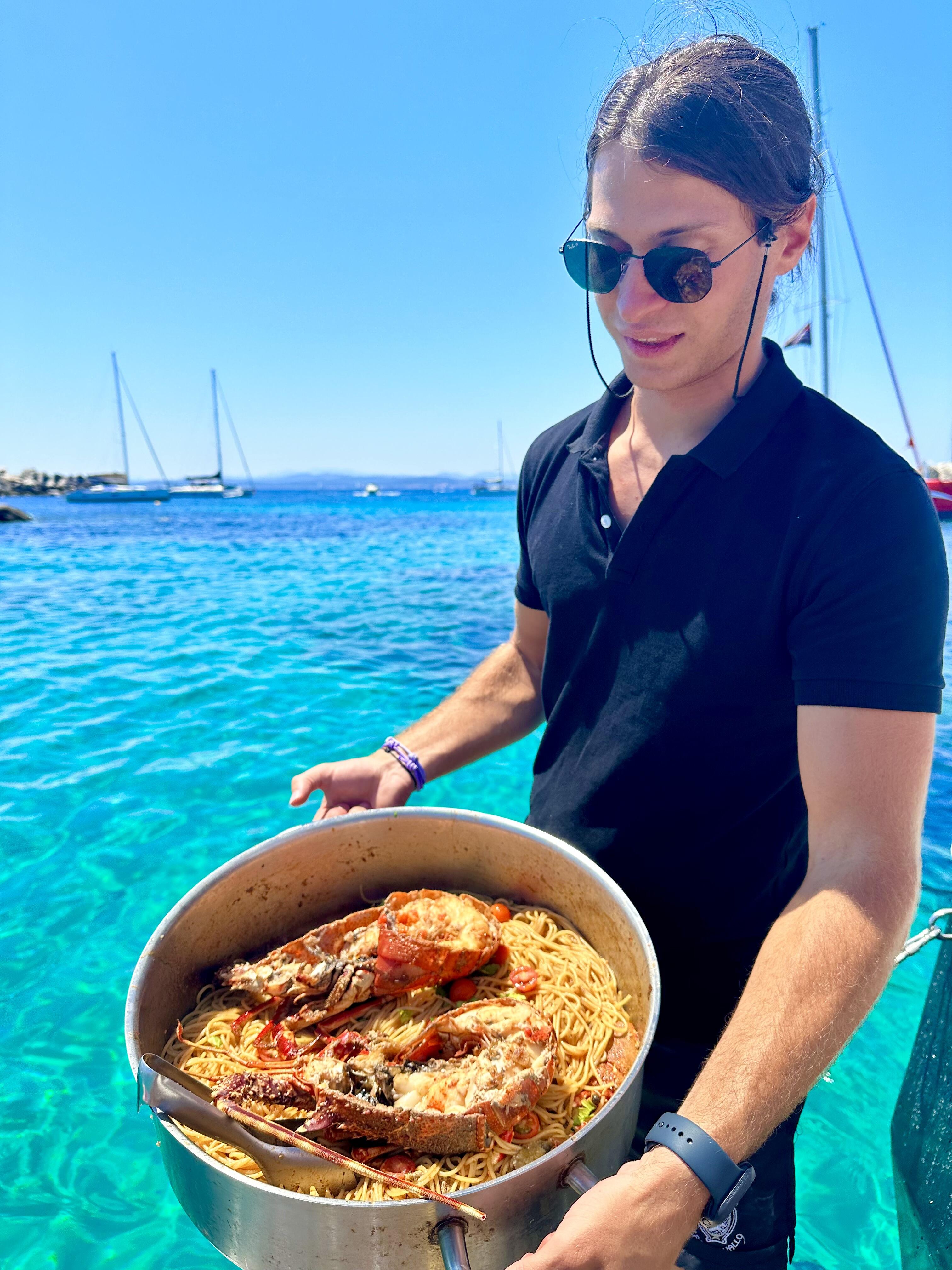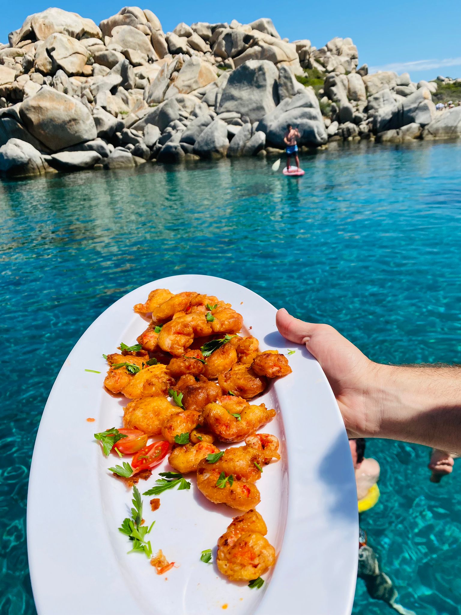 Arrivé sur site, vous pourrez vous baigner, faire du paddle et plonger avec votre masque et tuba en attendant l’apéro et la préparation de ses fameux beignets de fleur de courgette. Durant cette promenade en mer au départ de Bonifacio vers les Îles Lavezzi, dégustez un apéritif, musique à bord en attendant les pâtes aux vongoles faites par Tony. À la fin de la journée, vous ferez le grand tour de l’archipel en passant par Sperone et l’île de Piana pour rentrer à Bonifacio. Un moment hors du temps que vous saurez savourer avec vos amis et votre famille.
