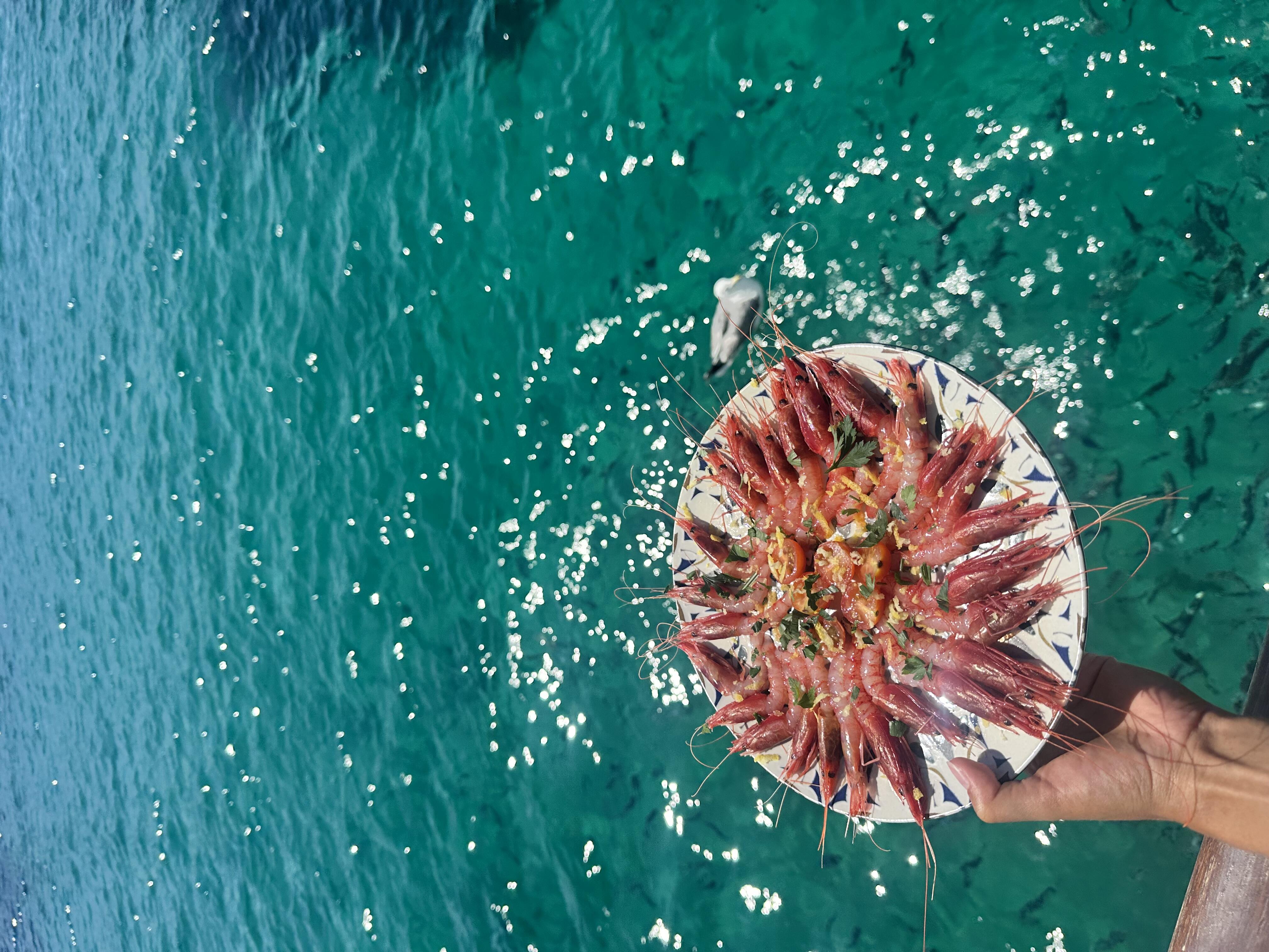 Au départ du quai des pêcheurs du port de Bonifacio, la journée commence par la découverte des lieux emblématiques de la cité des falaises. À savoir l’aperçu des grottes, l’anse de fazzio, les escaliers du roi d’Aragon, la ville suspendue au-dessus de la mer et le grain de sable. Le tout en longeant la côte jusqu’à au cap extrême sud de la Corse : le cap de St Antoine. De là, Tony vous emmène directement dans les criques les moins fréquentées de l’archipel pour que vous puissiez profiter d’un moment exclusif et intime dans le plus bel endroit du monde. Laissez-vous porter par son expérience des lieux et de la Méditerranée lors d’une promenade en mer au départ de Bonifacio mais surtout de sa cuisine insulaire à savourer en admirant les Îles Lavezzi.